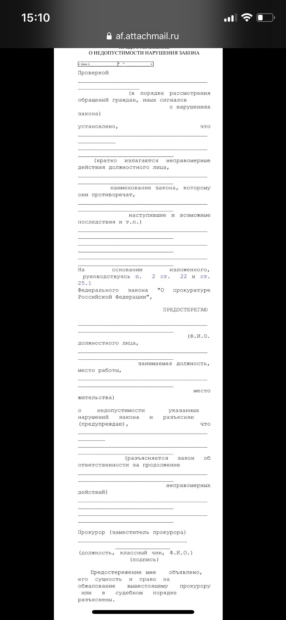 От имени прокурора вынесите предостережение о недопустимости нарушения закона по форме, утвержденной Указанием Генпрокуратуры России от 06.07.1999 №39/7 «О применении предостережения о недопустимости нарушения закона».