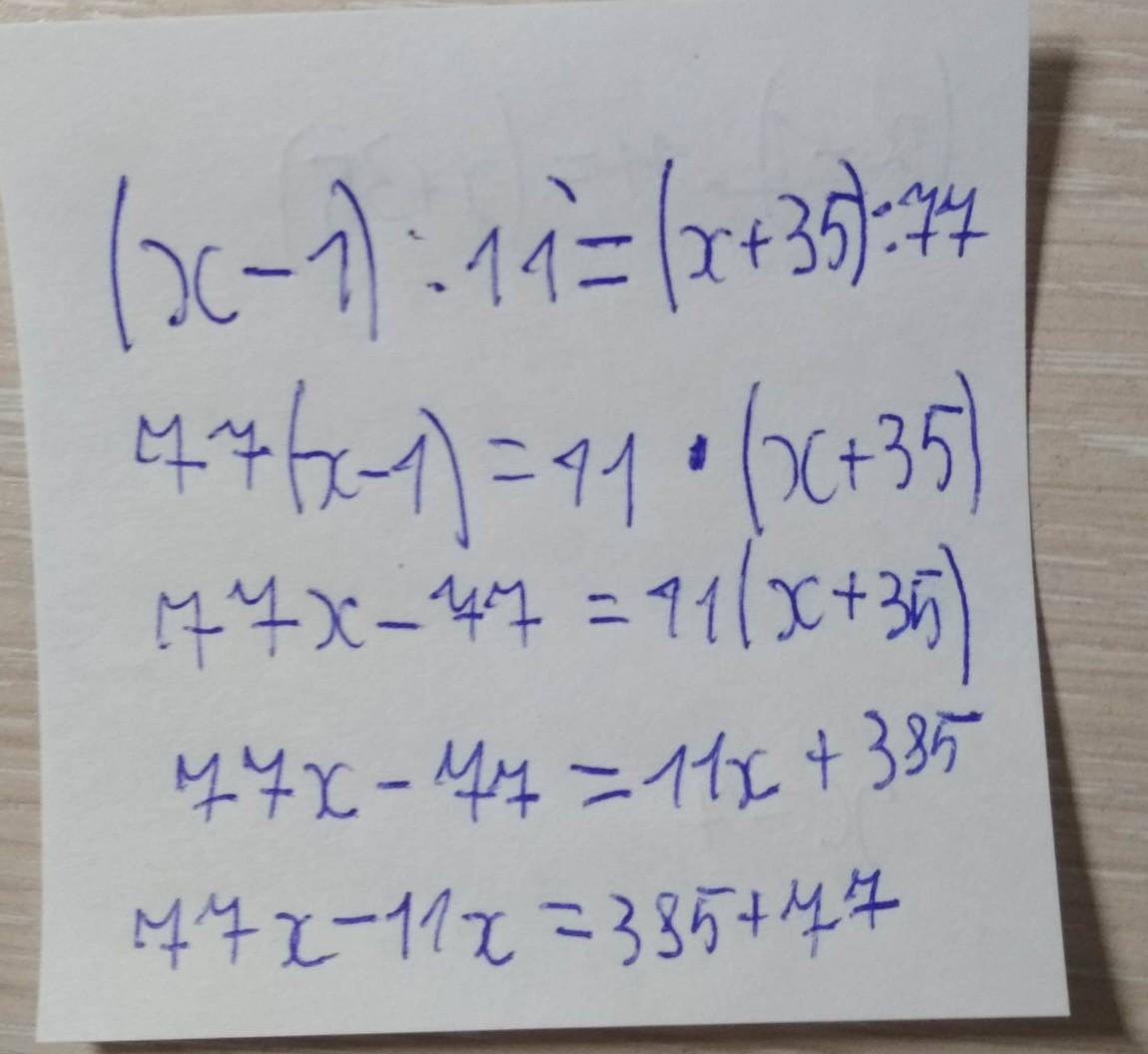 Из правой части вычитаем 77-35+42 так как в скобках сложение нужно приводить к сложению