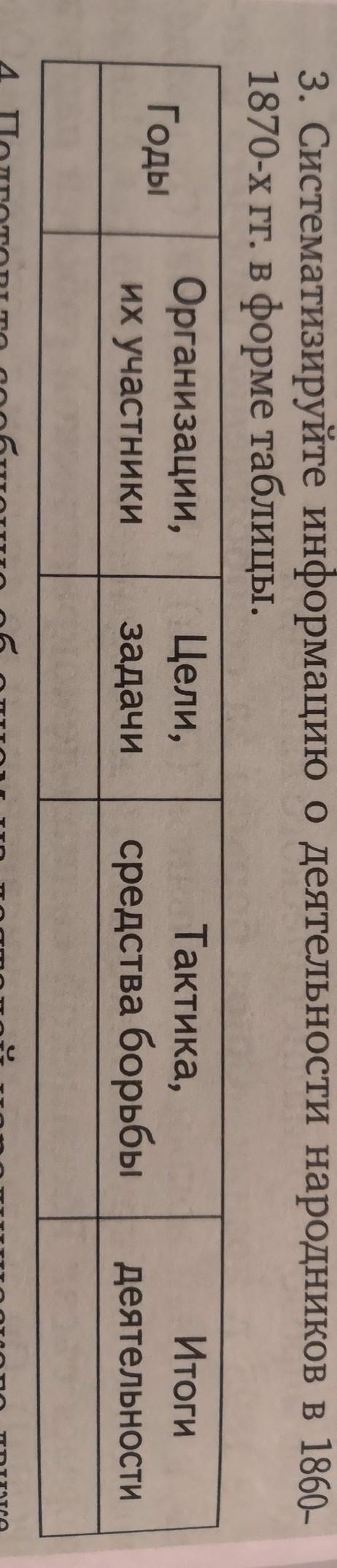 систематизируйте информацию о деятельности народников в 1860-1870-х гг. в форме таблицы