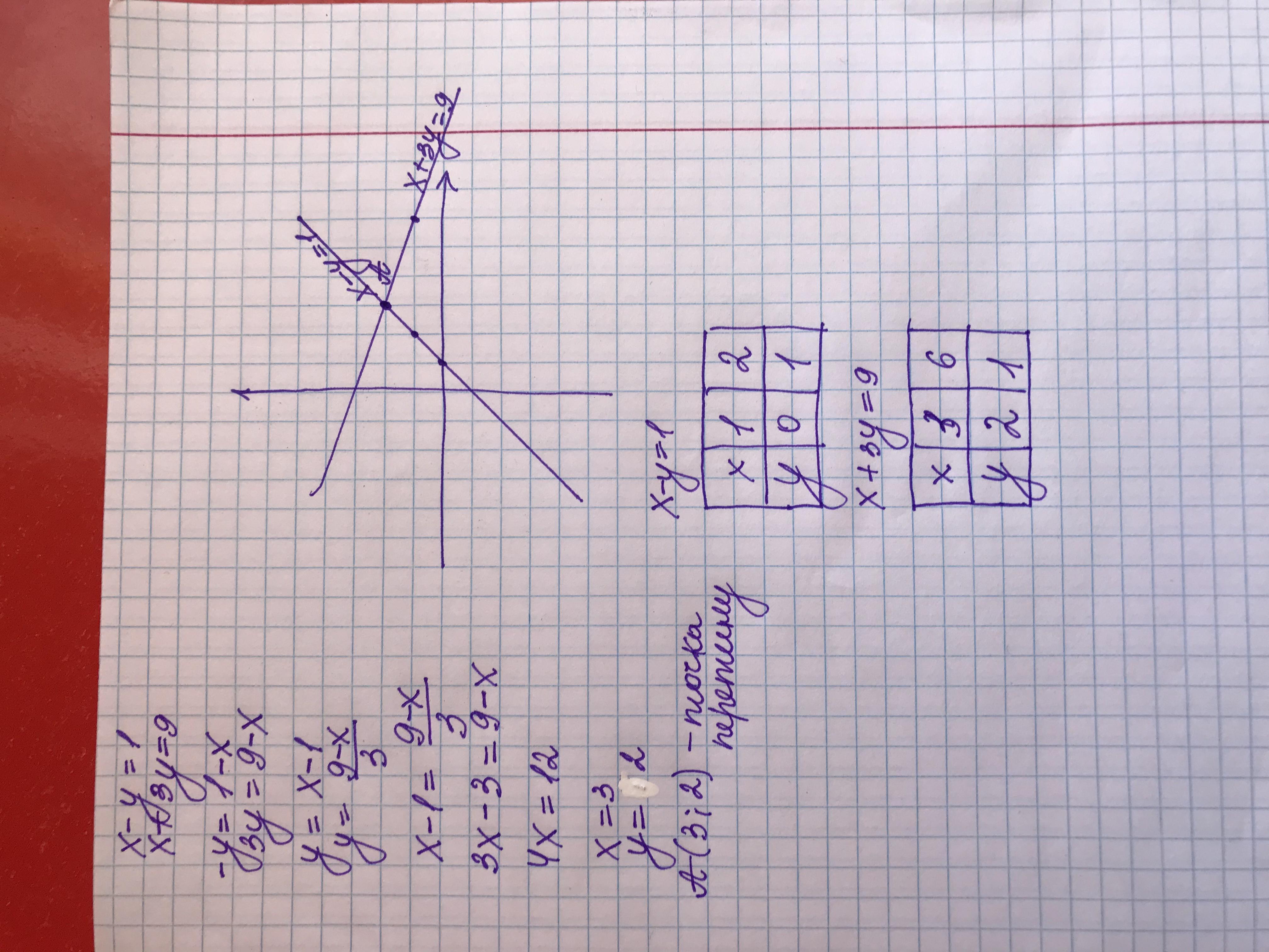 В одной координатной плоскости построить графики уравнений x - y =1 и x + 3y = 9 Найдите точки пересичения графиков
