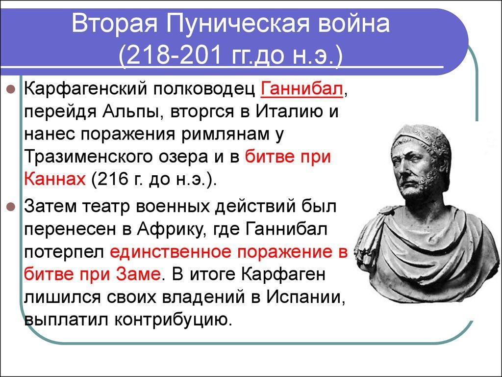 Римского полководца, который победил Ганнибала во время второй Пунической войны звали Клавдий Нерон. Карфагенская армия была ожесточено разбита римской армий вблизи Карфагена. Тем самым окончилась Вторая Пуническая война, которая длилась на протяжении 17 лет.