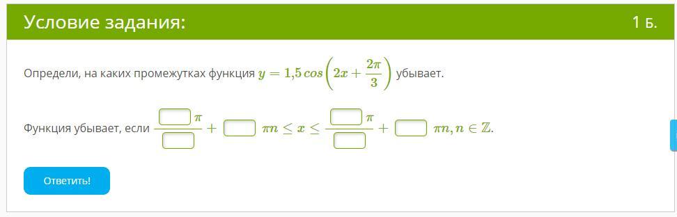 Хелпп, на каких промежутках функция y=1,5cos(2x+2π/3) убывает.