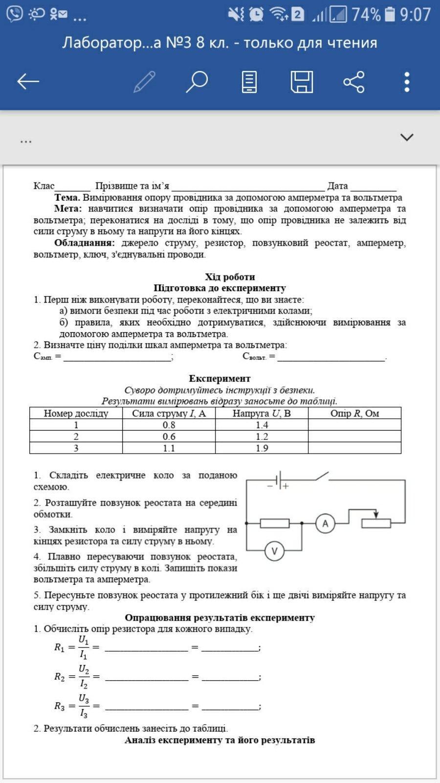 Л.Р. Вимірювання опору провідника за допомогою амперметра та вольтметра