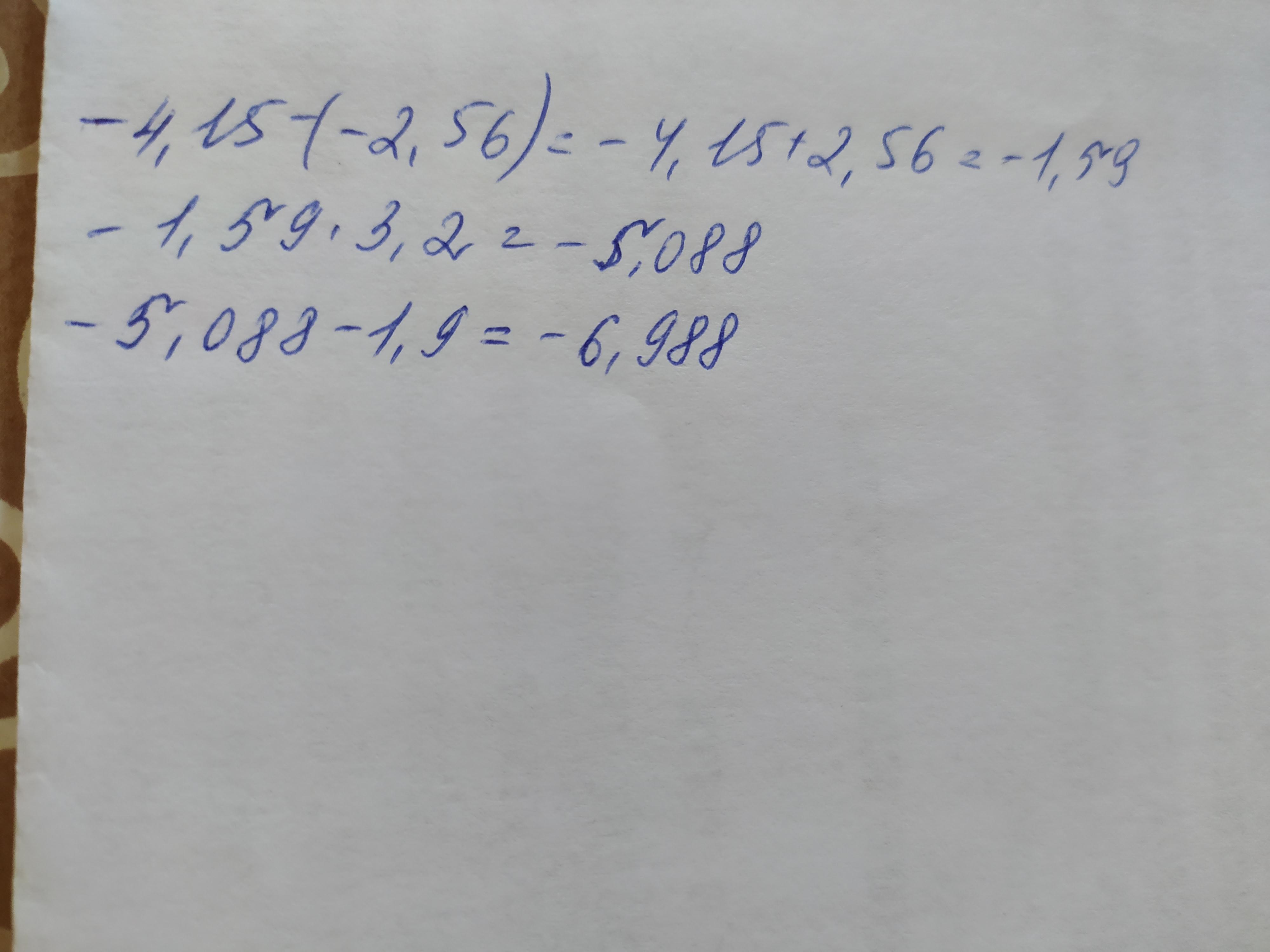 Найдите значение выражения распешите подробно:(-4,15-(-2,56))*3,2-1,9