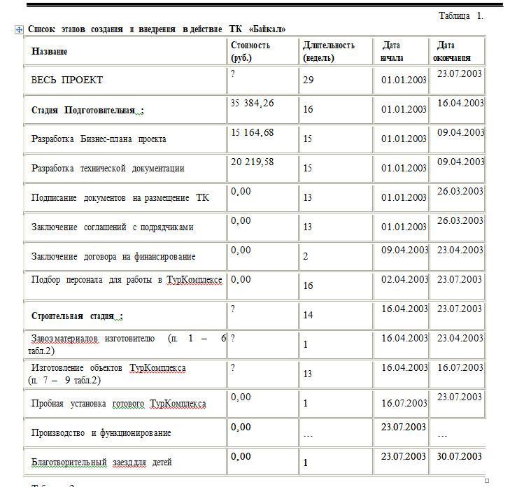 3. Составьте график подготовки и строительства ТурКомплекса в форме диаграммы GANTT (используйте таблицу 1, столбцы 3 – 5).