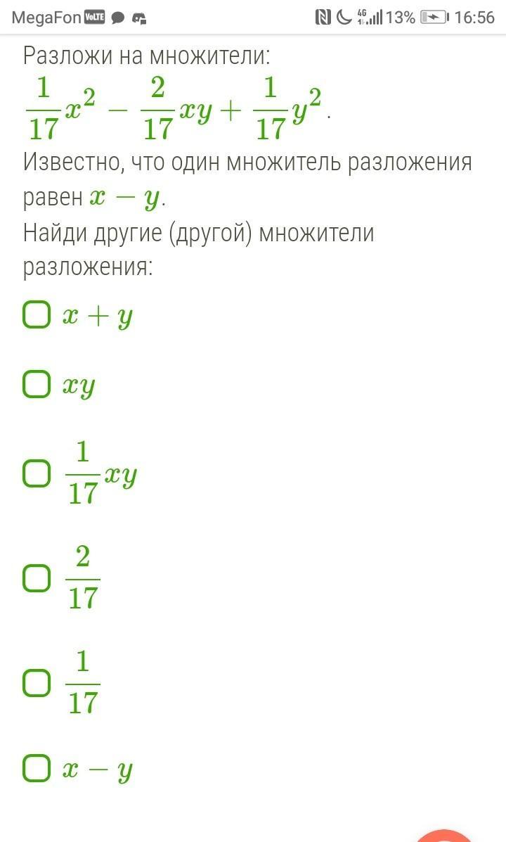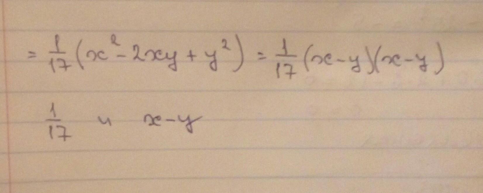 Разложи на множители: 1/17x^2−2/17xy+1/17y^2 .