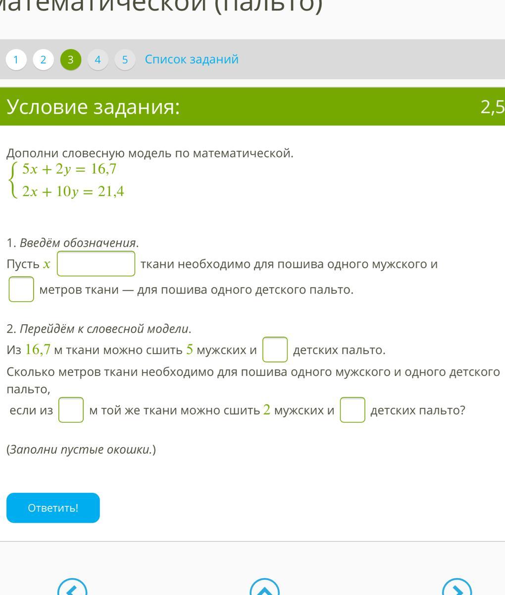 если из 21.4 м той же ткани можно сшить 2 мужских и 10 детских пальто?