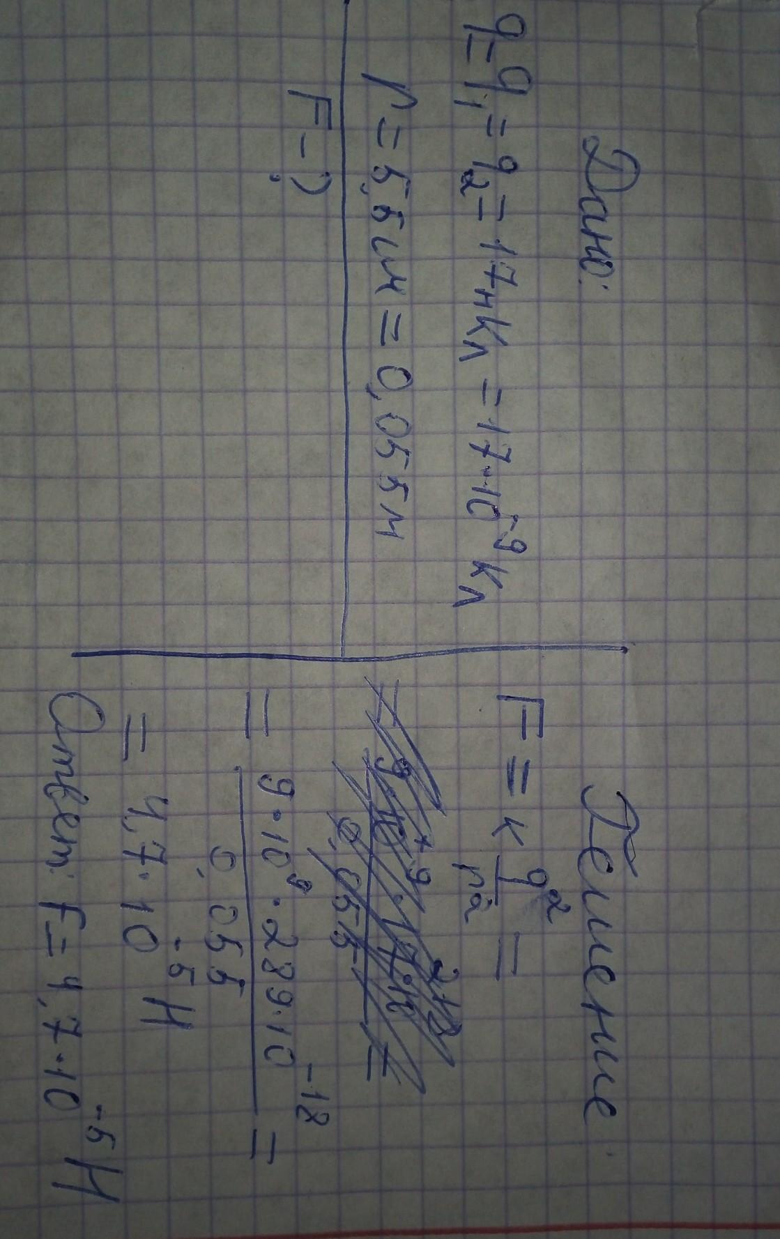 С какой силой взаимодействует два заряда по 17нКл находящиеся на расстоянии 5.5см друг от друга?