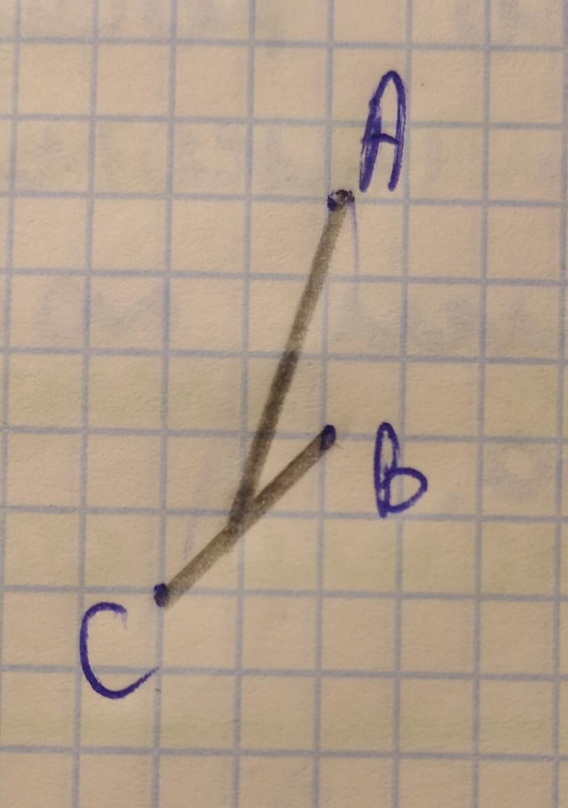 На клетчатой бумаге с размером клетки 1см на 1см отмечены точки А, В и С. Найдите расстояние от точки А до середины отрезка ВС. Ответ выразите в сантиметрах. В ответ