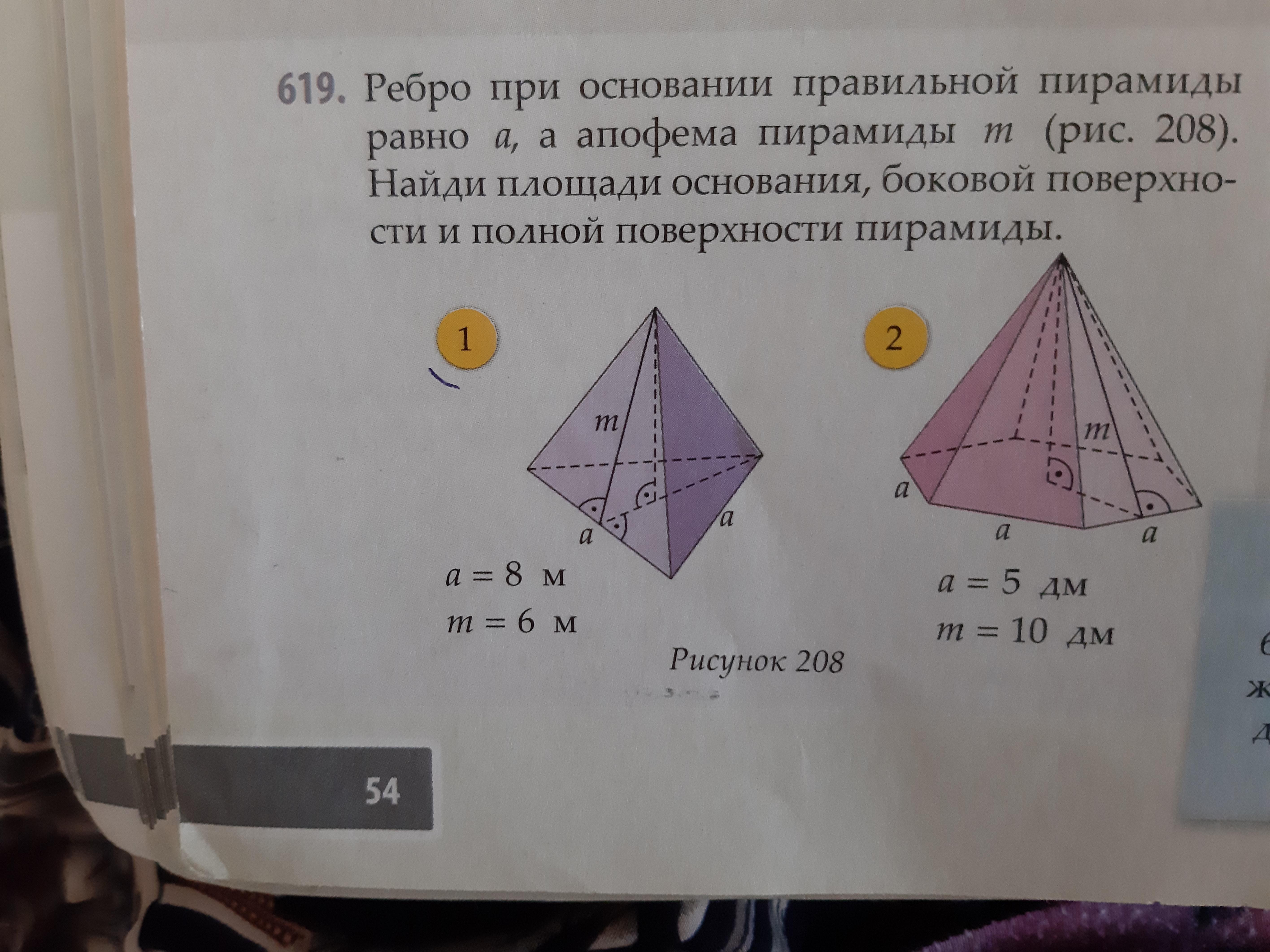 Ребро при основании правильной пирамиды равно А, а апофема пирамиды М.