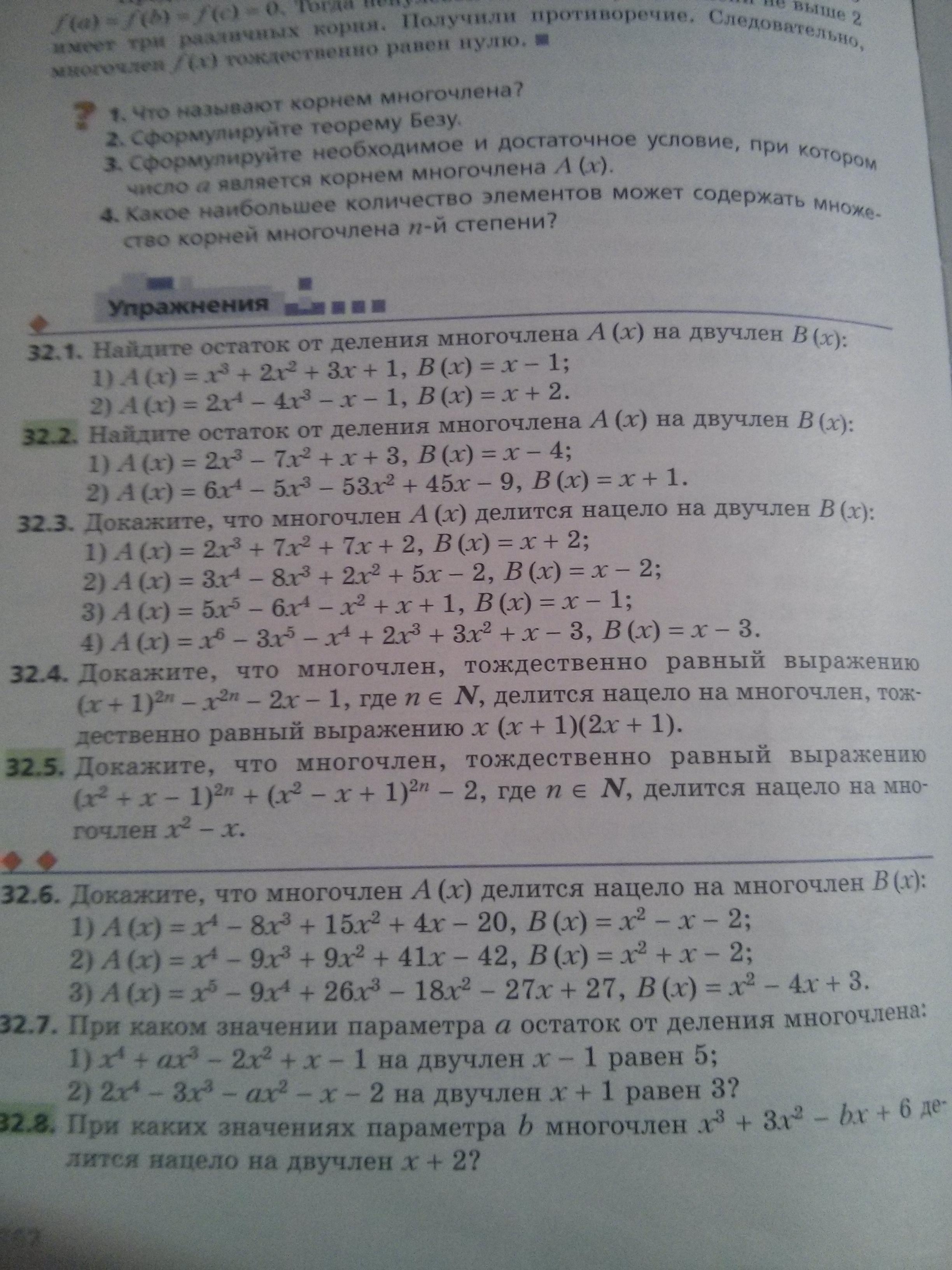 сделайте пожалуйста с решением по теореме Безу, номер 32.2
