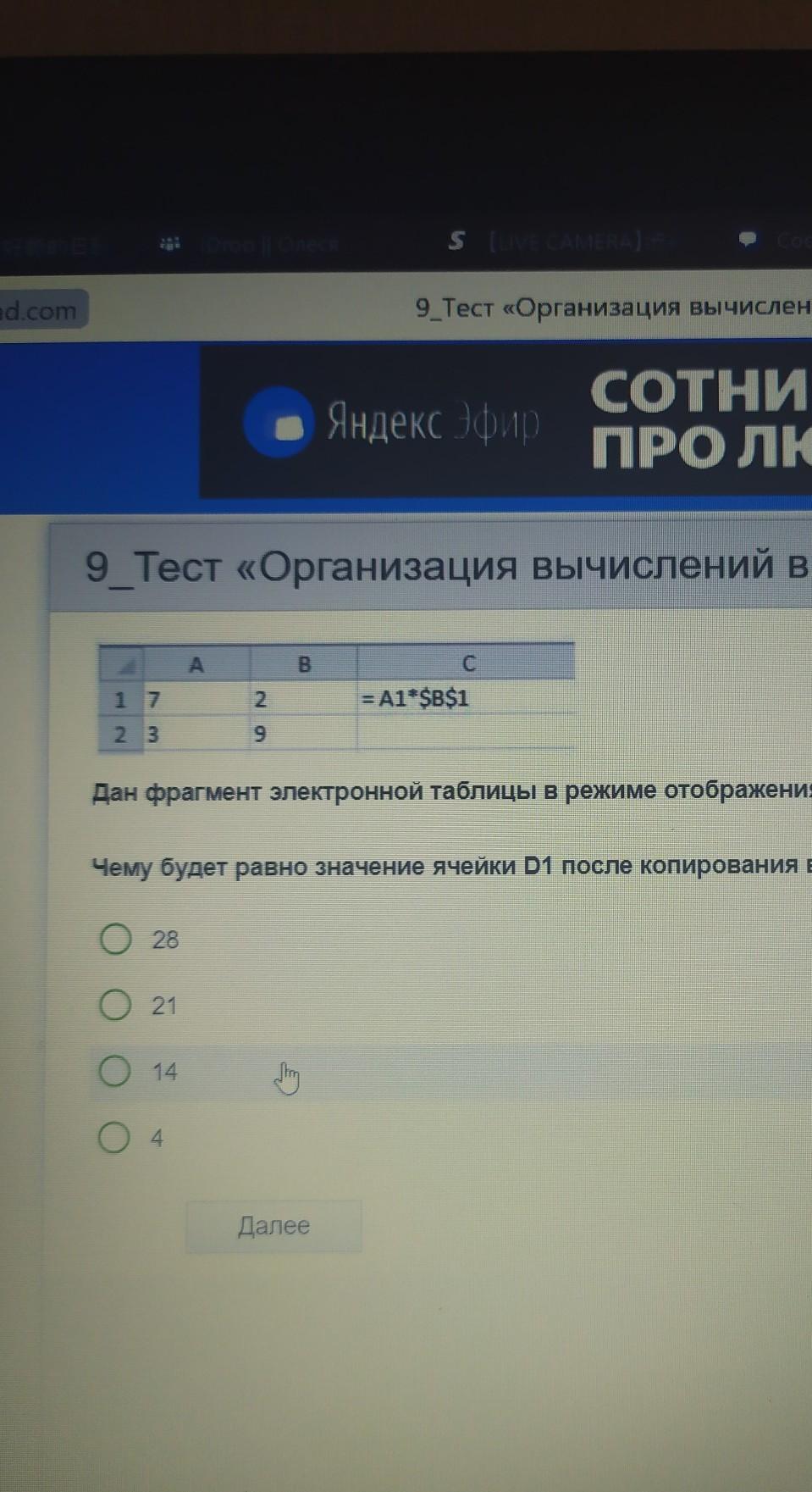 Чему будет равно значение ячейки D1 после копирования в неё формулы из C1 ?