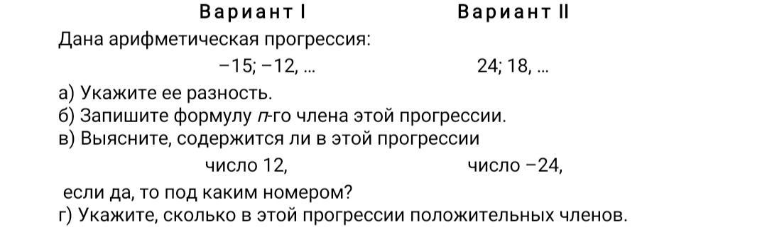 в) 12=-15+3(n-1); 27=3(n-1); 27/3=n-1; 9=n-1;