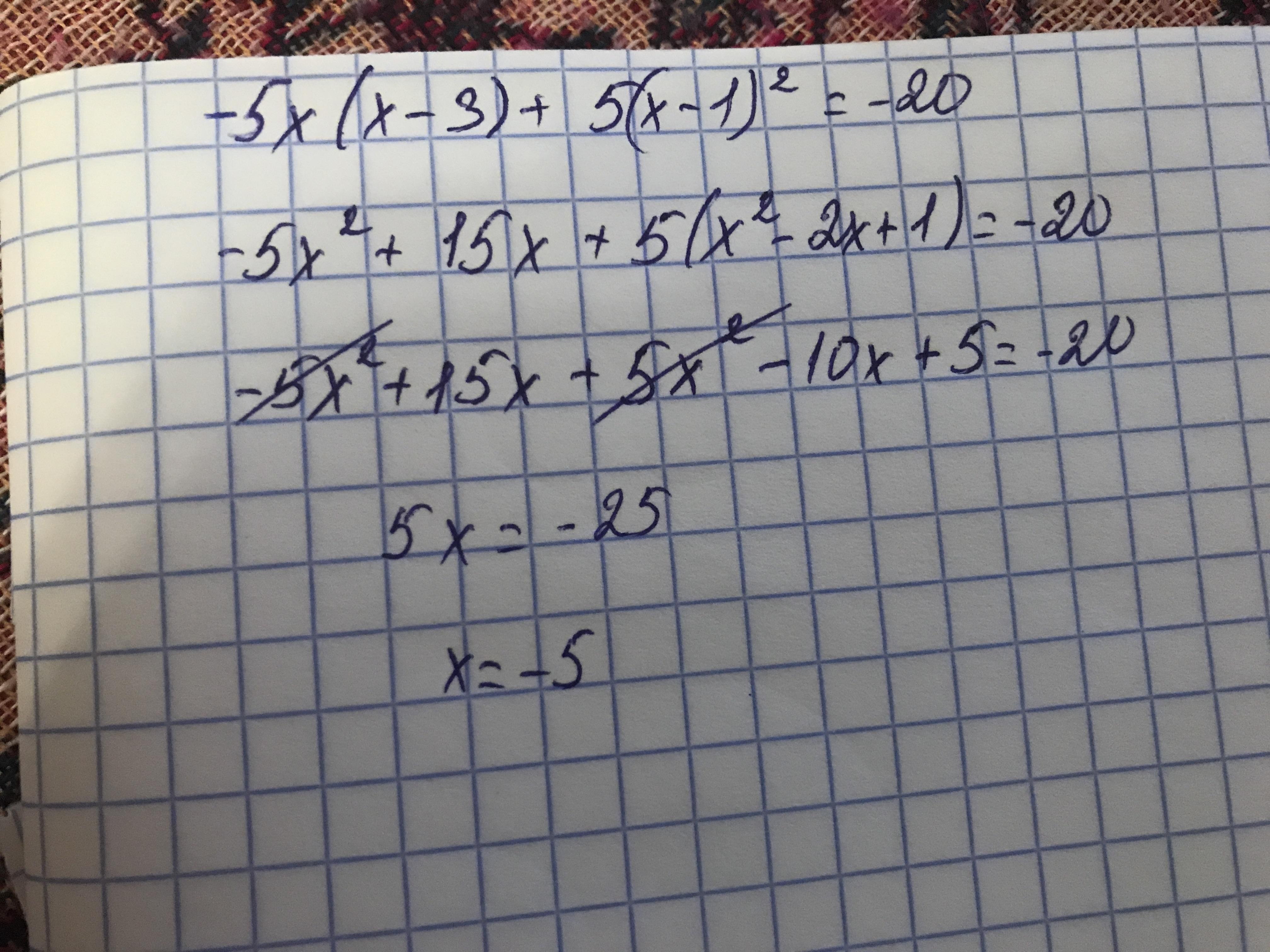 -5x·x -5x·(-3) + 5(x² - 2x + 1) = -20
