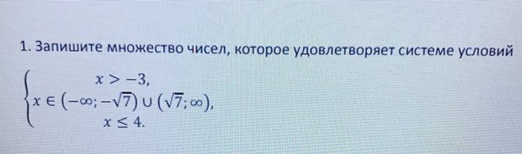 { x > -3 ; x ∈ ( - ∞ ; - √7 ) ∪ (√7 ; ∞) ; x ≤ 4 . (система условий написал на одной строке)