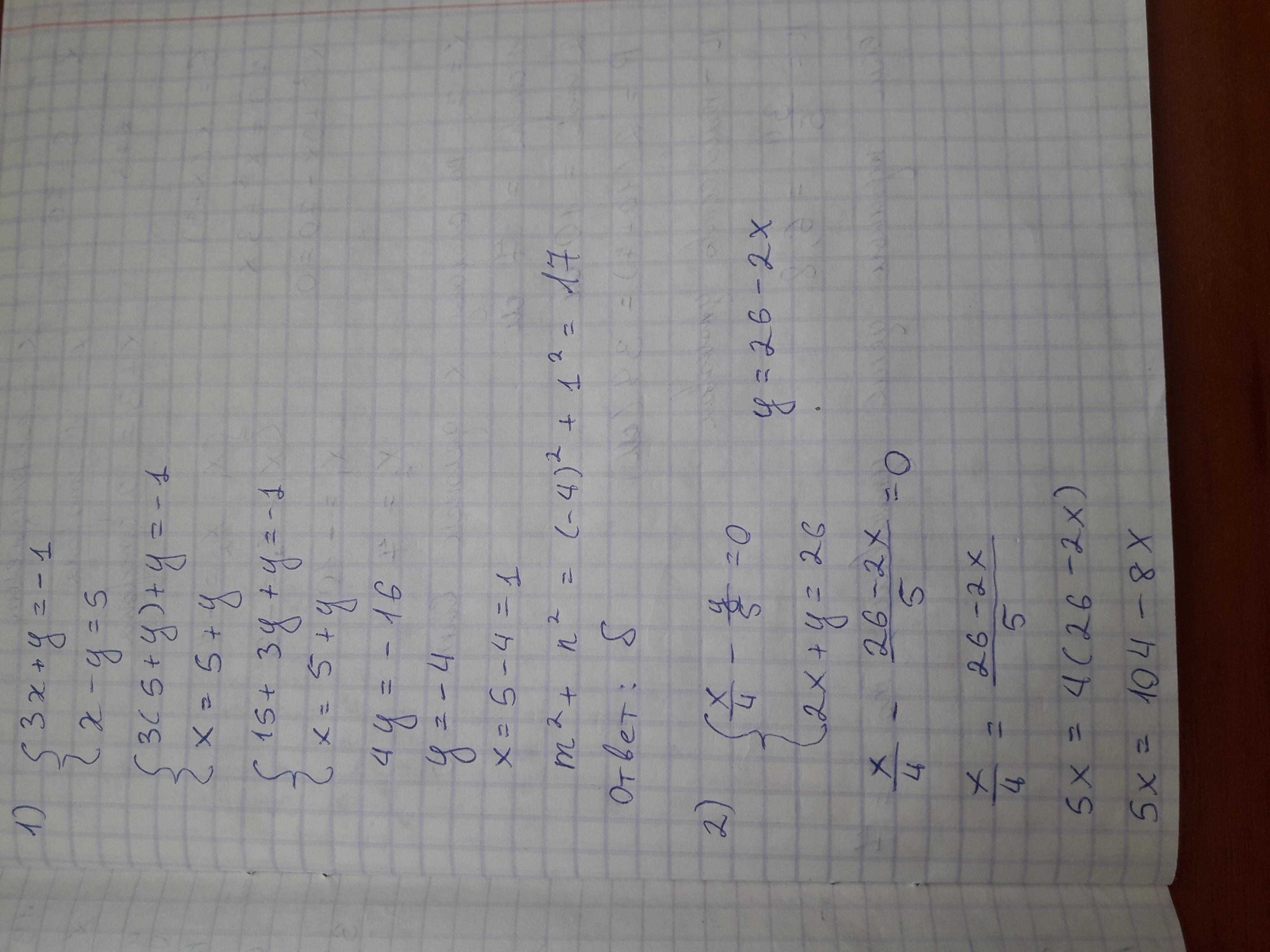 если у=-4,то х=5+(-4)=1 (1;-4) = 1+16=17