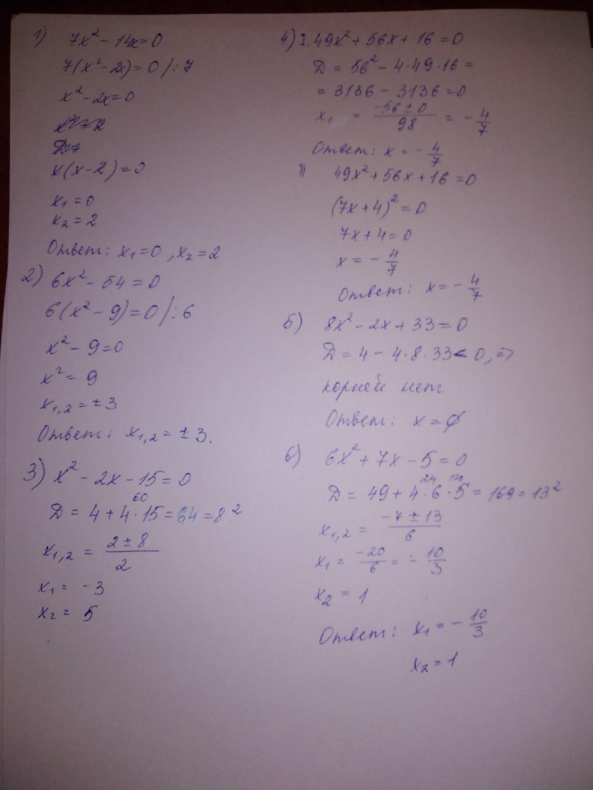 1) 7X2 - 14X = 0