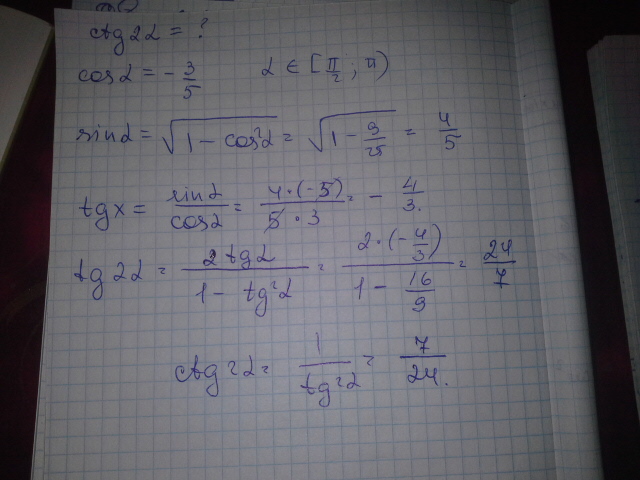 ctg2a=(-7/25)/(-24/25)=7/24 ответ 2.