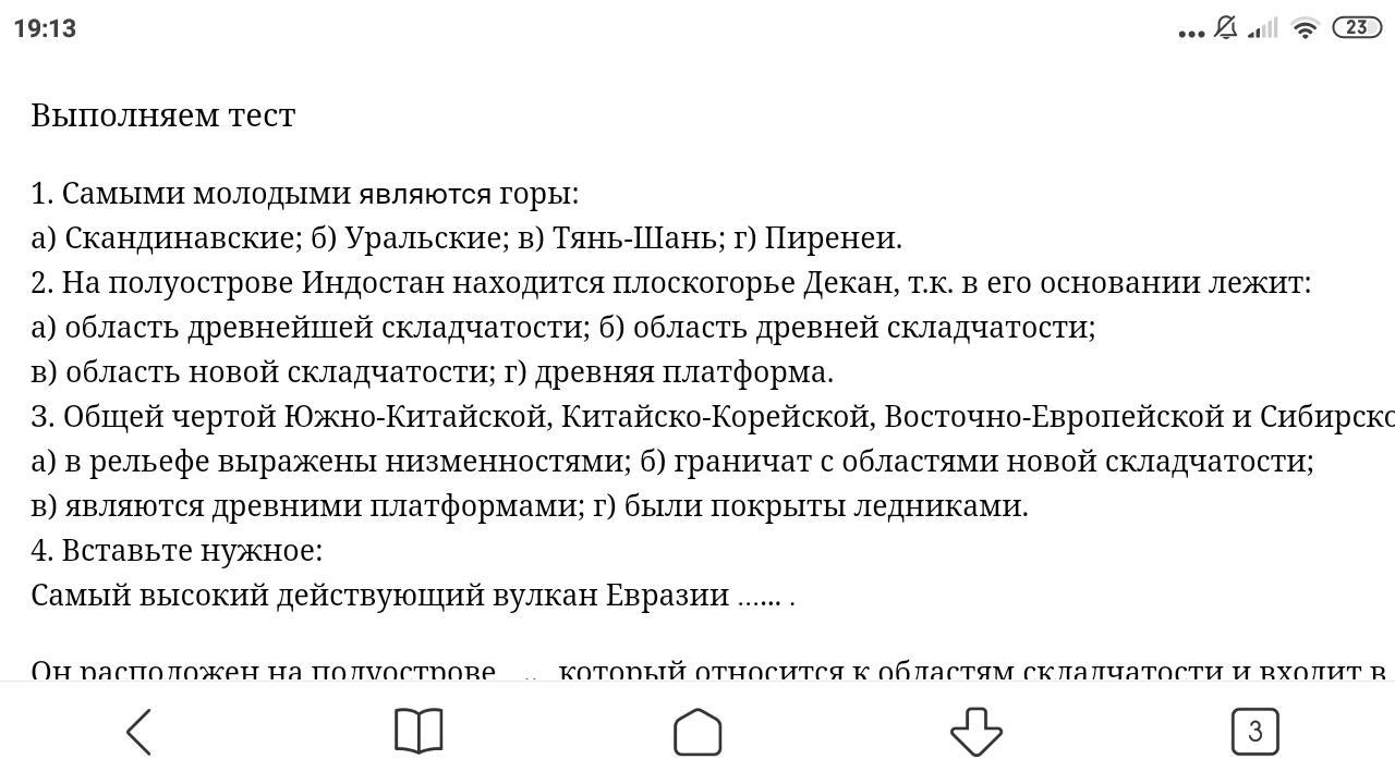 Тест по географии Рельефы ископаемые Евразии