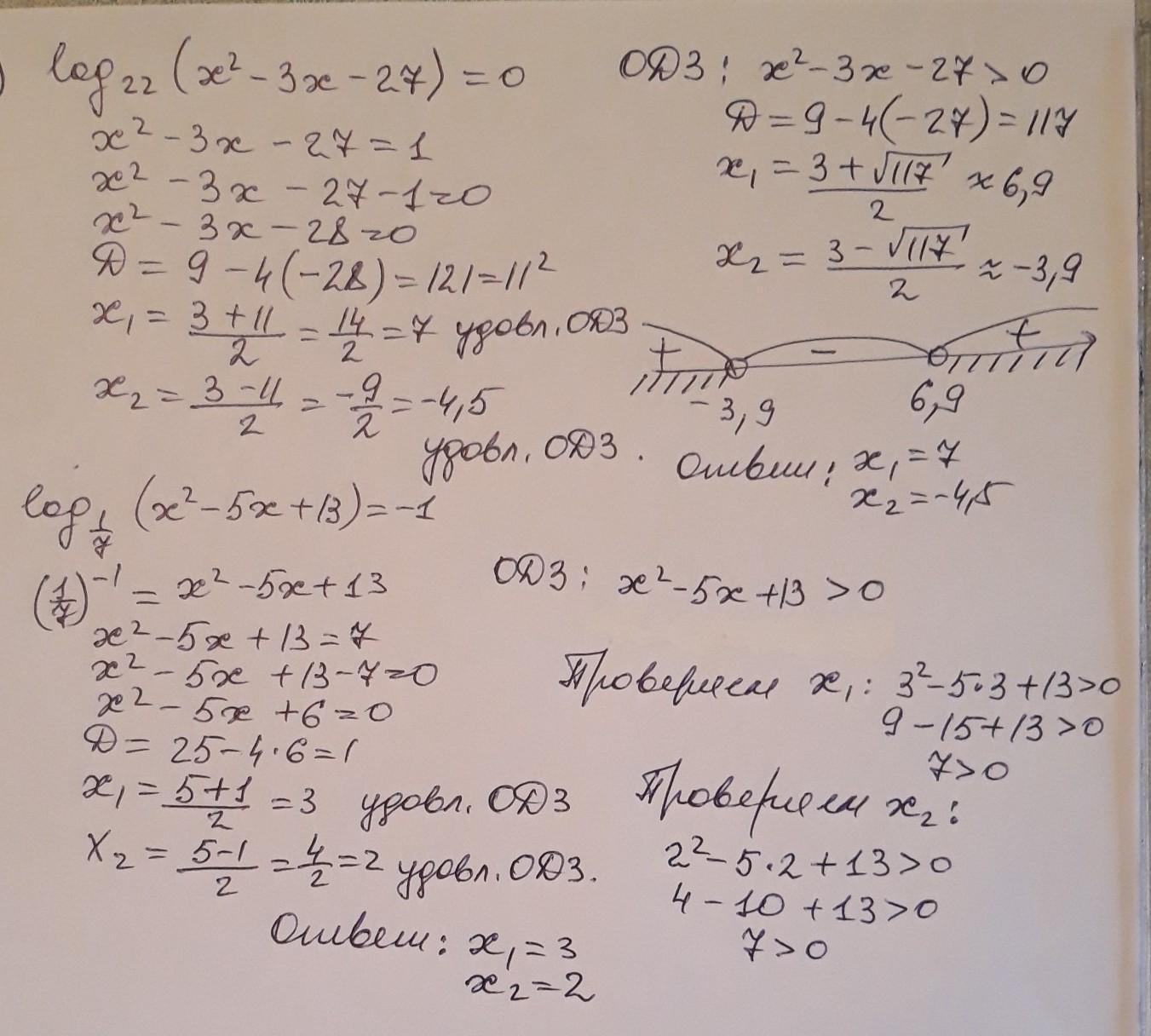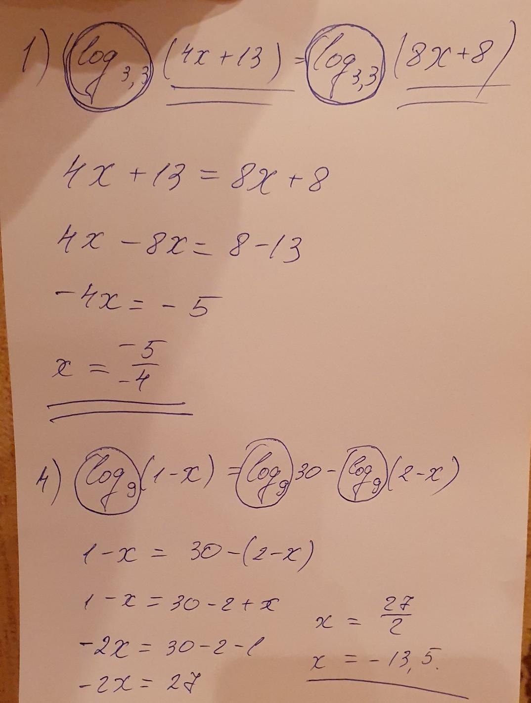 Решите логарифмические уравнения.