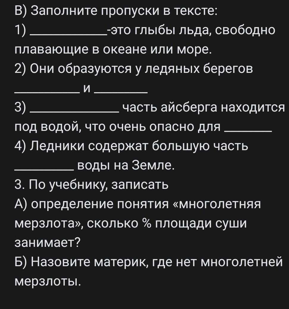 1)Айсберги .2)- 3) Большая , кораблей .4)пресной