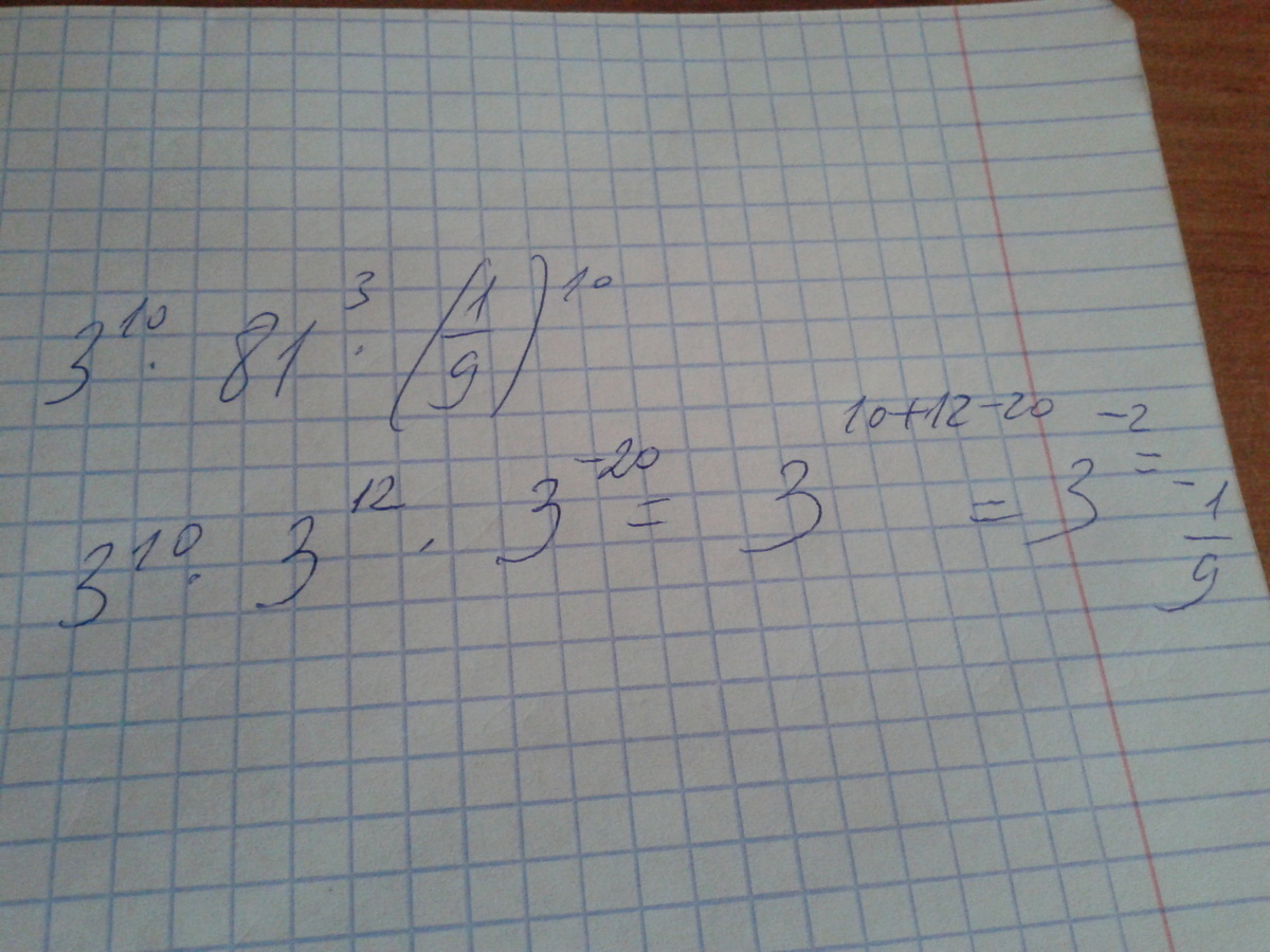 Помогите решить пожалуйста! 3 в 10 степени умножить на 81 в 3 степени и умножить на (1/9)в 10 степени!