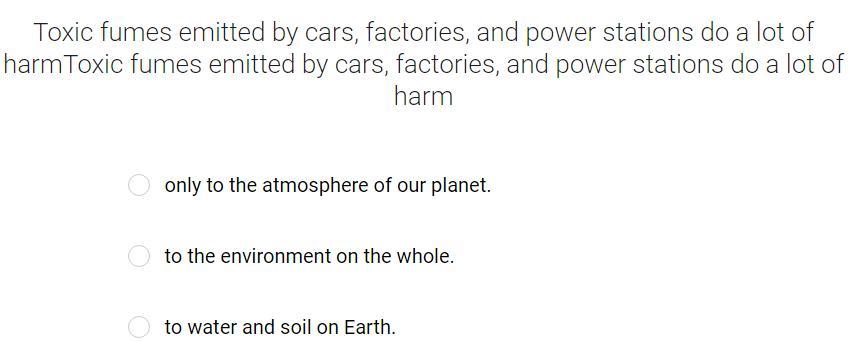 Ответ: to the environment on the whole-на всю природу в целом