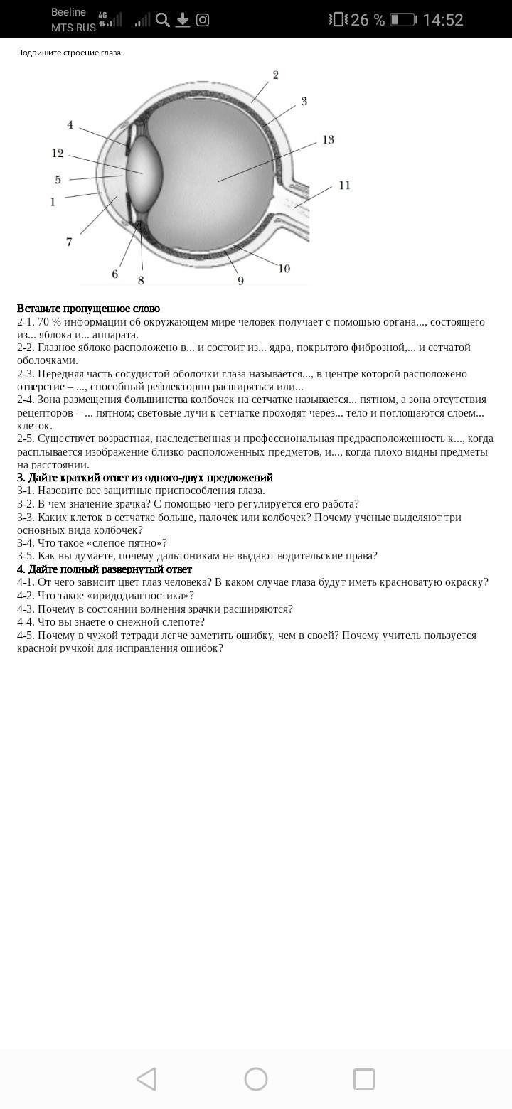 Пожалуйста помогите с биологией про глаз не нужно схему а следующие