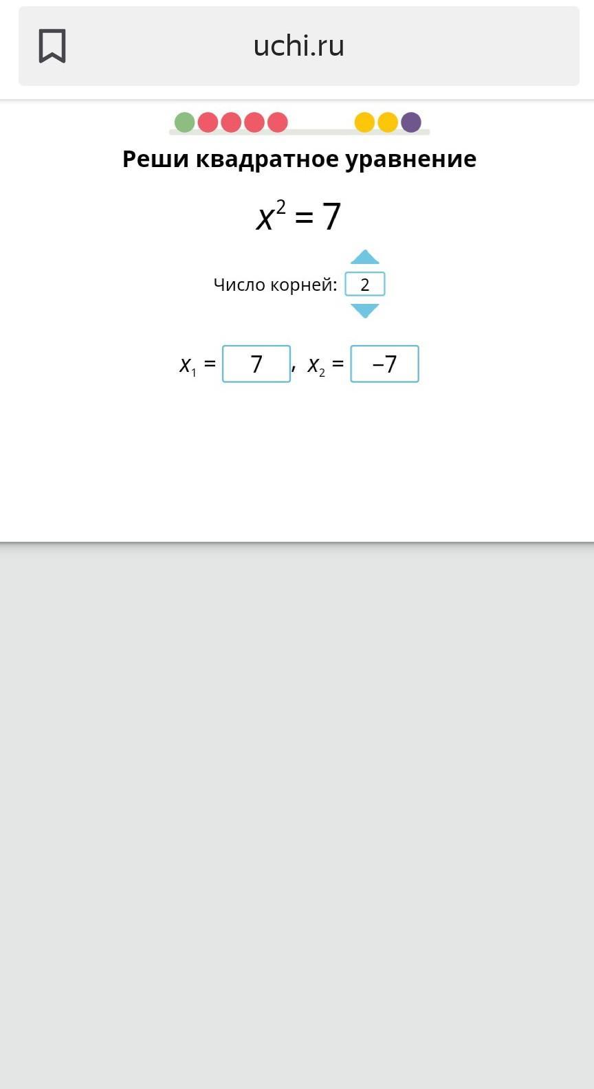Извлекаем квадратный корень у нас получается x= +-√7 и оттуда уже 2 корня один с минусом другой с плюсом