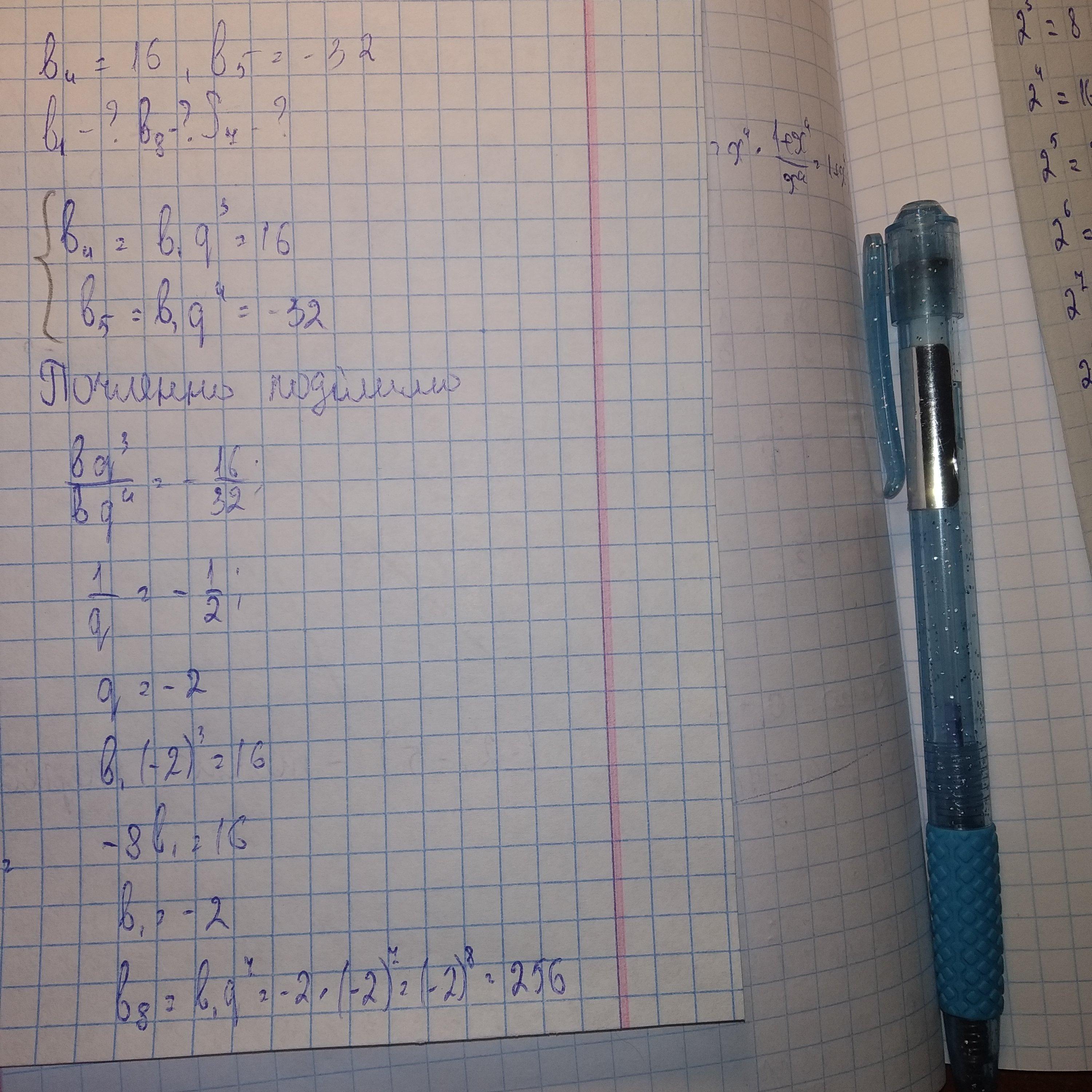 У геометричної прогресії (bn) b4=16, b5=-32. Знайдіть: 1) перший член