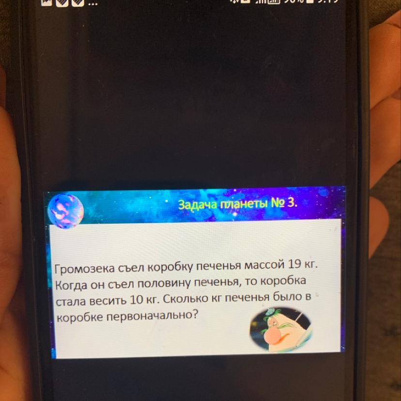 Пошаговое объяснение: 19-10=9 кг, следовательно половина массы печенья это 9 кг, а значит всего печенья было: 9+9=18 кг