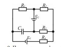 (см. рисунок), если ε1 = 2В, ε2 = 4В, R1 = 40 Ом, R2 = 30 Ом,