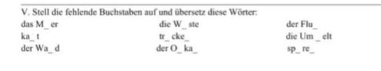 Meer -море, kalt- холодный, Wald- лес, Wüste - пустыня, trocken - сухой, Fluss - река, Umwelt -окр. мир, sparen -экономить