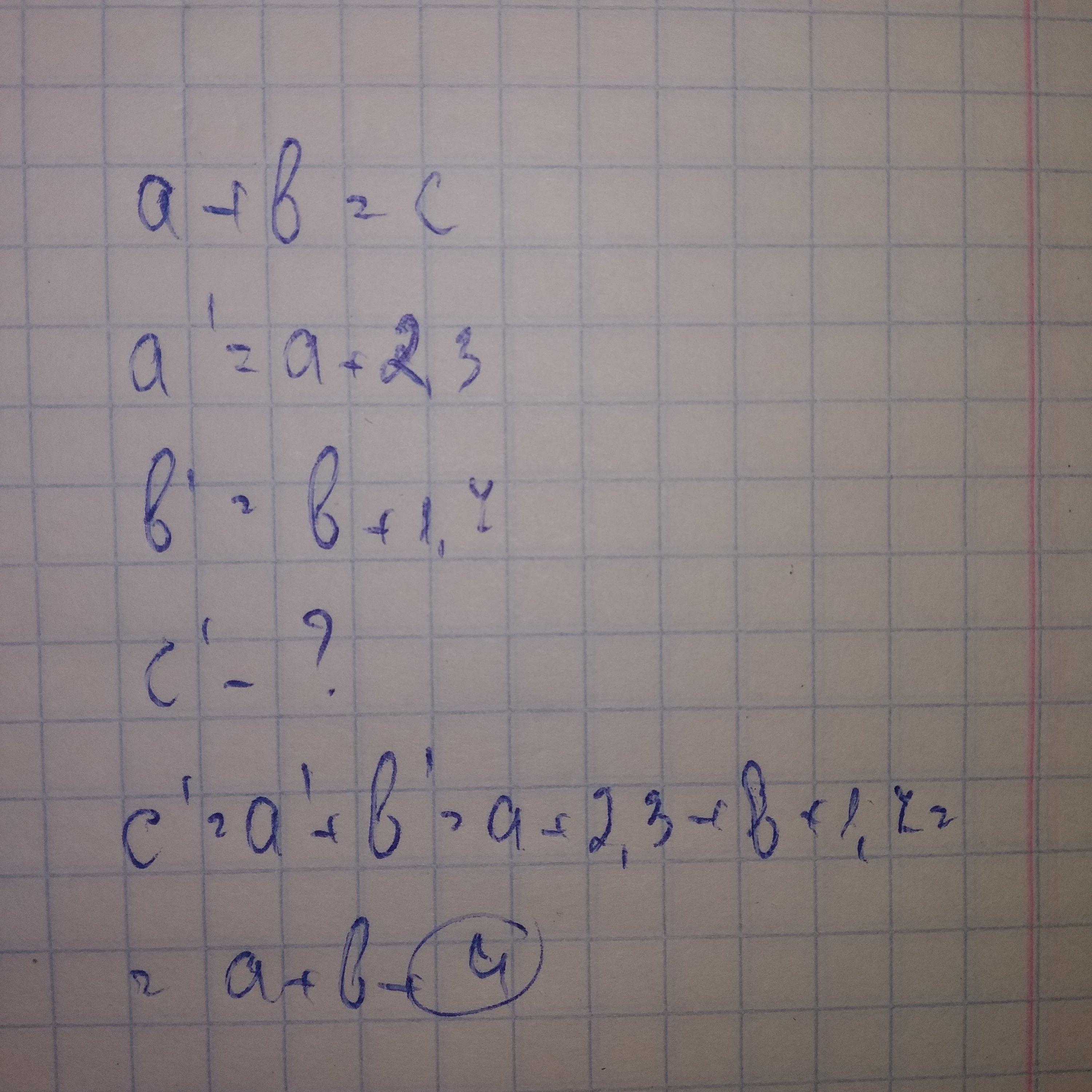первое слагаемое увеличили на 2,3, а второе на 1,7.Как изменилась их сумма? Пожалуйста помогите срочно