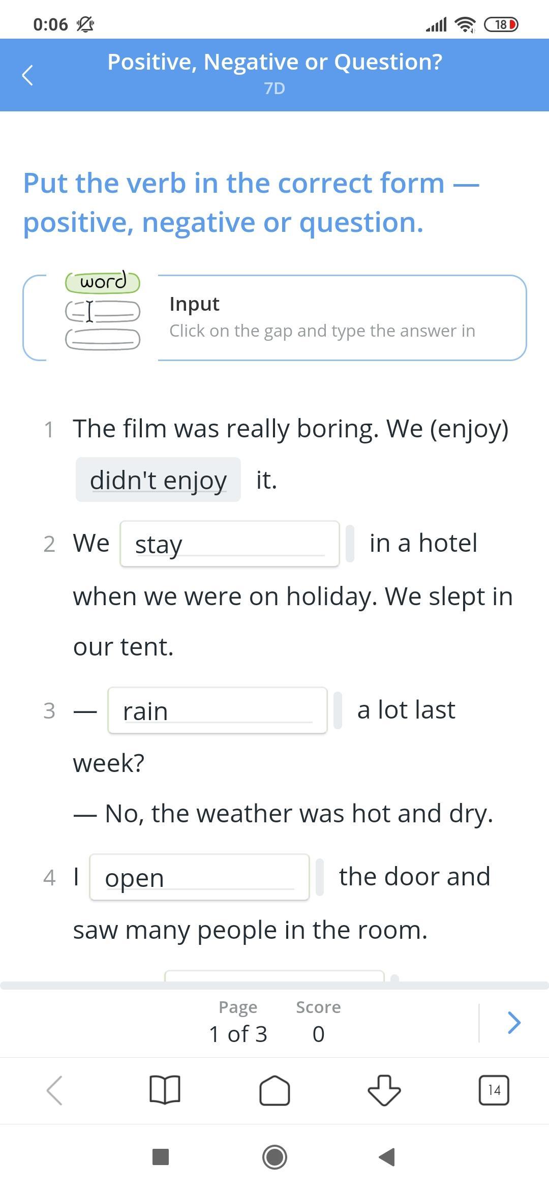 Ответ:2)we didn't stay in a hotel when we were on holiday. We slept in our tent