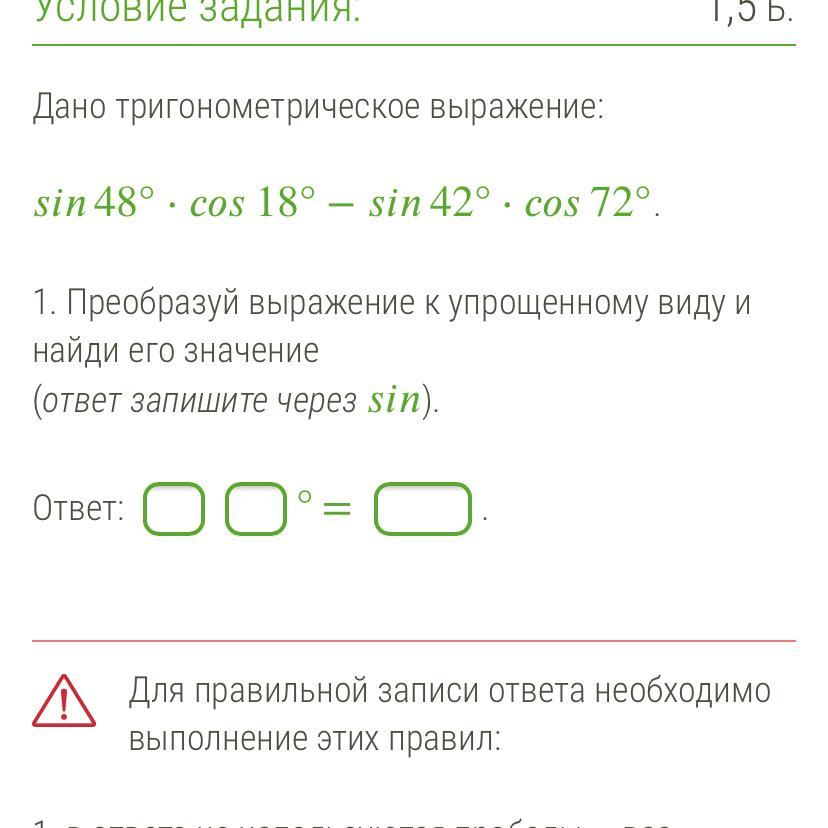 sin48°cos18°-sin42°cos72°=cos42°sin72°-