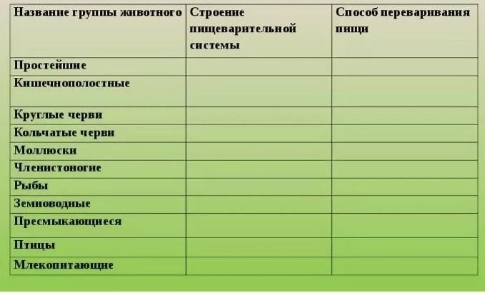 помогите сделать таблицу по биологии 7 класс(таблица на фото)​