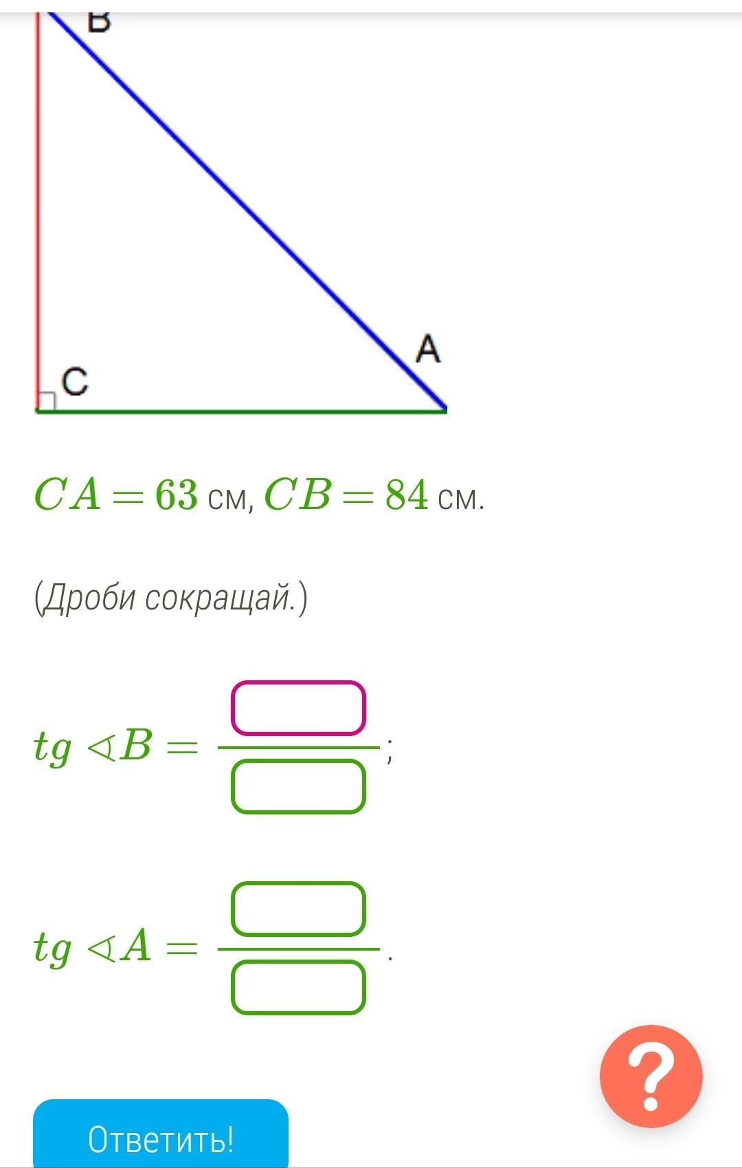 1) tg a= accb = 6384=34=0.75