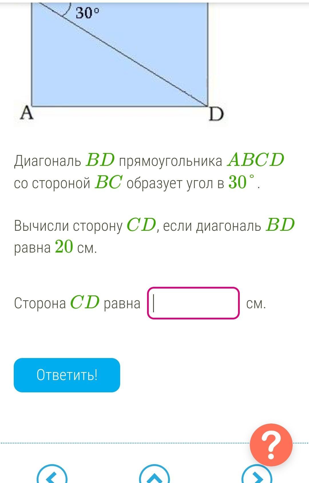 2) cd = 12*bd = 10 (напротив угла в 30гр лежит катет равный половине гипотенузы)