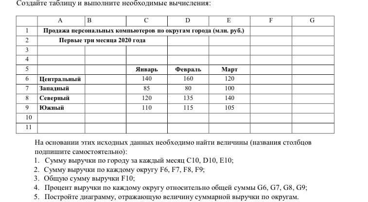 Помогите выполнить задания в excel (название столбцов подписать самостоятельно и ещё можно после заданий построить диаграмму)