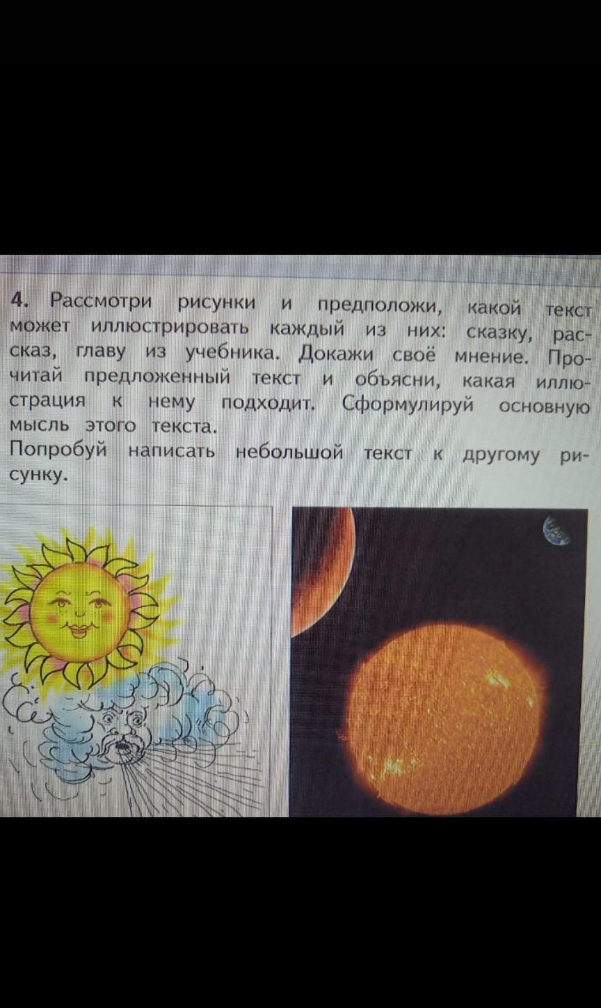 Первый рисунок может подойти к сказке а второй на главу из учебника. А где сам предложенный текст?