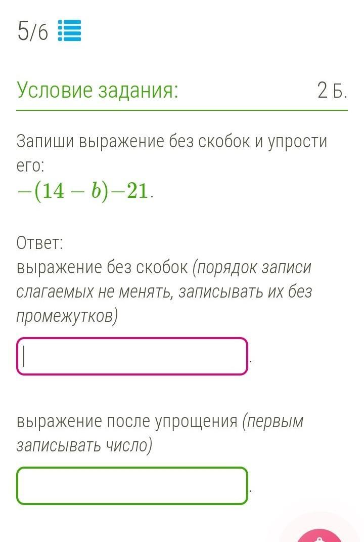 -(14 - b) - 21 = (-14+b) - 21 = -14 + b - 21 - без скобок