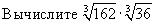 sqrt[3]{162} * sqrt[3]{36} =  sqrt[3]{162*36} =  sqrt[3]{27*6*6*6} =  sqrt[3]{3*3*3*6*6*6}=3*6=18..