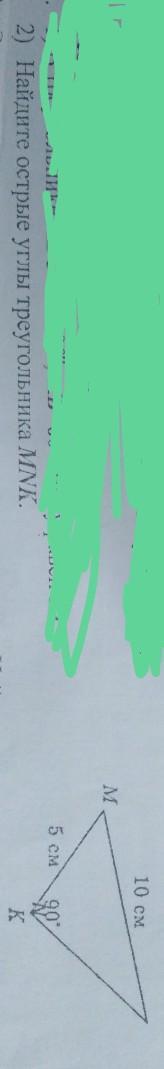 острый угол это менее 90 градусов угол тоисть еслит кут K имеет 90 2 других кута являютса острыми кут M и Другой кут он непозначен буквой являетса острымы кутами вот и вся задача