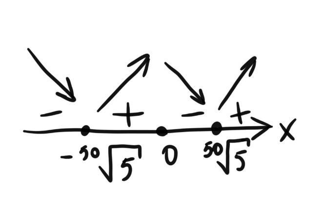 Разместим данные точки на координатной оси и найдём интервалы, где производная положительна/отрицательна что поможет нам найти где функция возрастает/убывает (рисунок приложен)