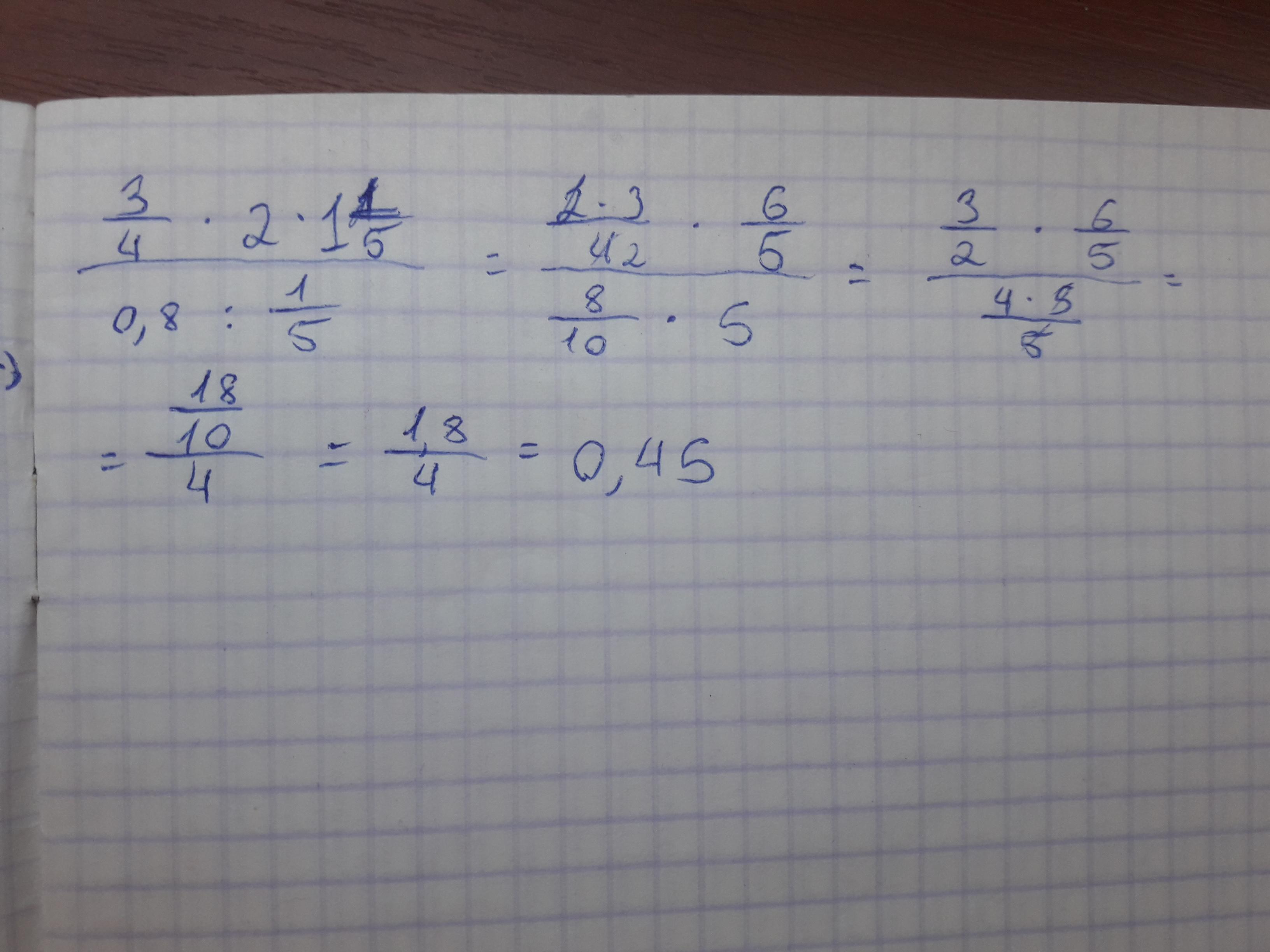 1) ¾ * 2 * 1⅕ = ¾ * 8/4 * 1⅕ = 24/16 * 6/5 = 144/80 = 1,8.