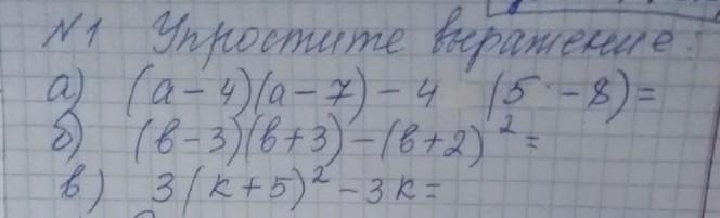 а) (a - 4) (a - 7) - 4 (5 - 8) = a² - 7a - 4a + 28 - 20 + 32 =