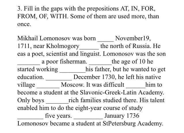 From, in, of, at, with, in, in, for, of, in,in