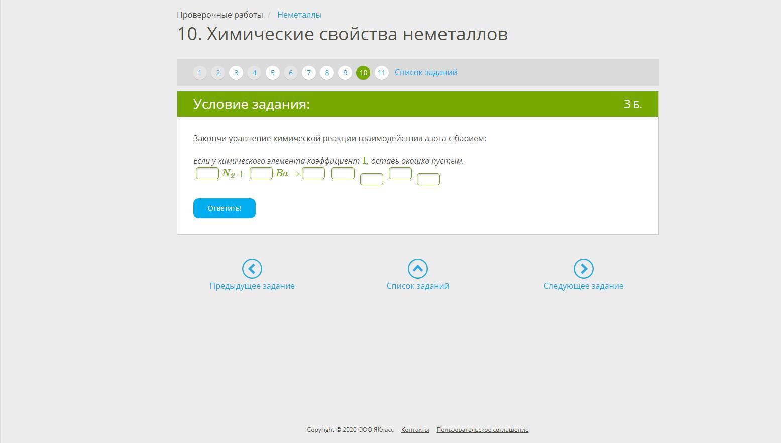 Закончи уравнение химической реакции взаимодействия азота с барием