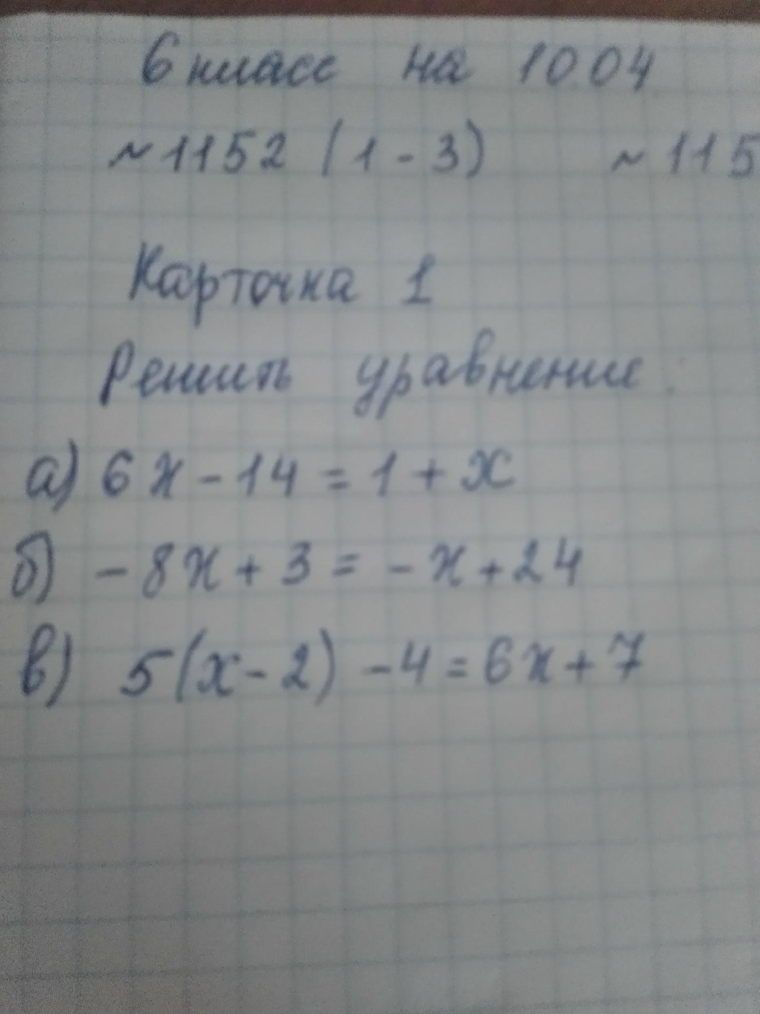в)5(x-2)-4=6x+7